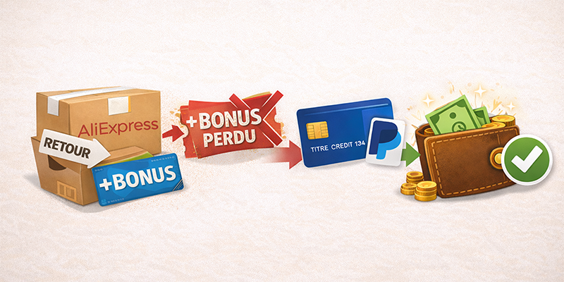 Lors d’un remboursement pour un article acheté sur AliExpress, il est préférable de demander un remboursement directement sur votre carte bancaire, plutôt que sous forme de bonus crédité sur votre compte AliExpress.